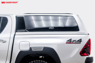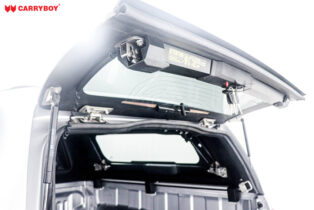 Carryboy ZX Canopy are constructed from strong laminate fibreglass and are individually designed with each model application in mind. Introduction of a “Rotary Lock System” in stainless steel for Lift Up Side windows and rear door that improves security and simplifies operation.